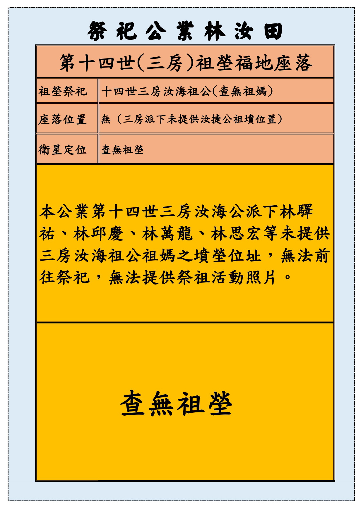 {開基祖}→十四世三房汝海祖公.祖媽