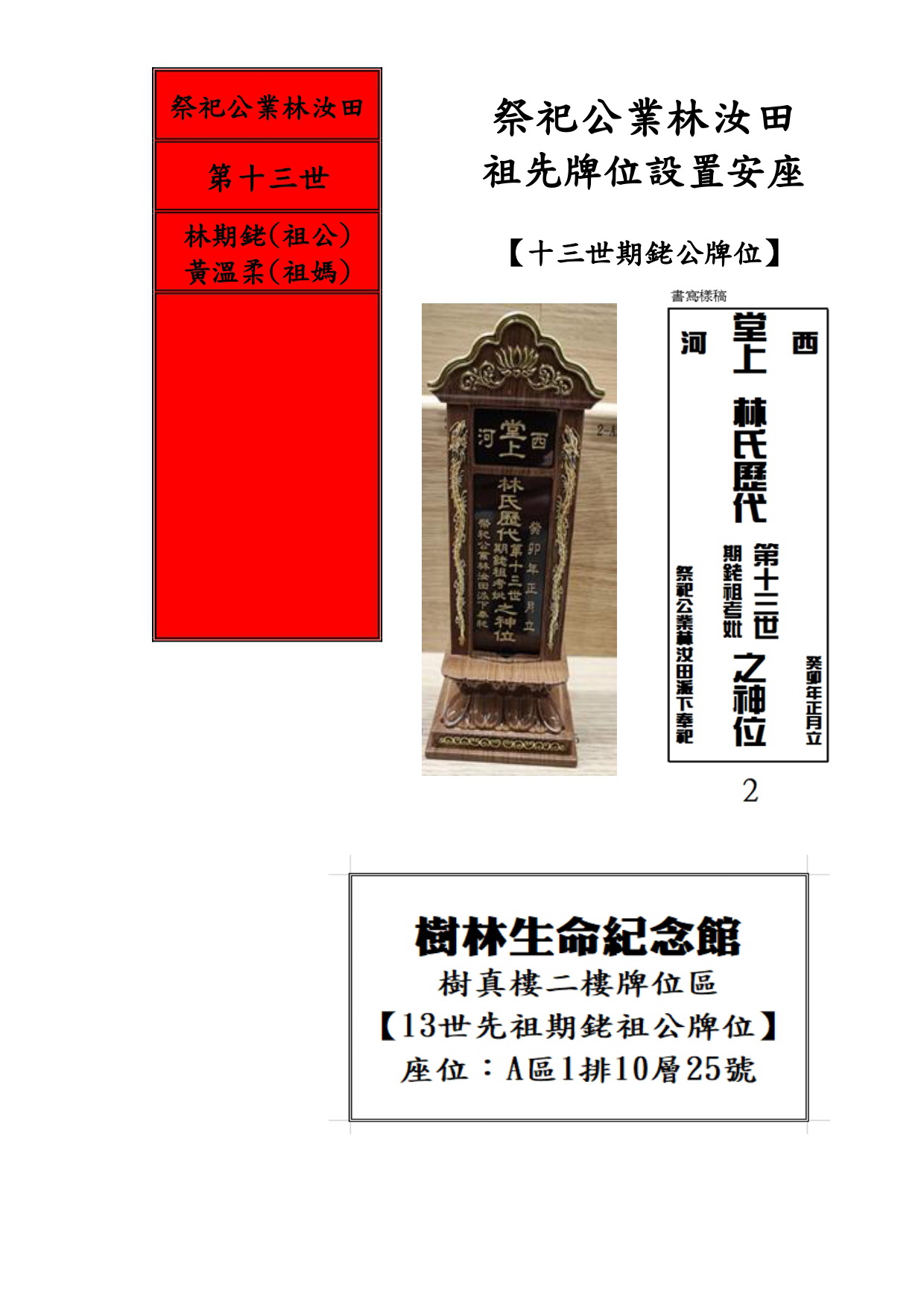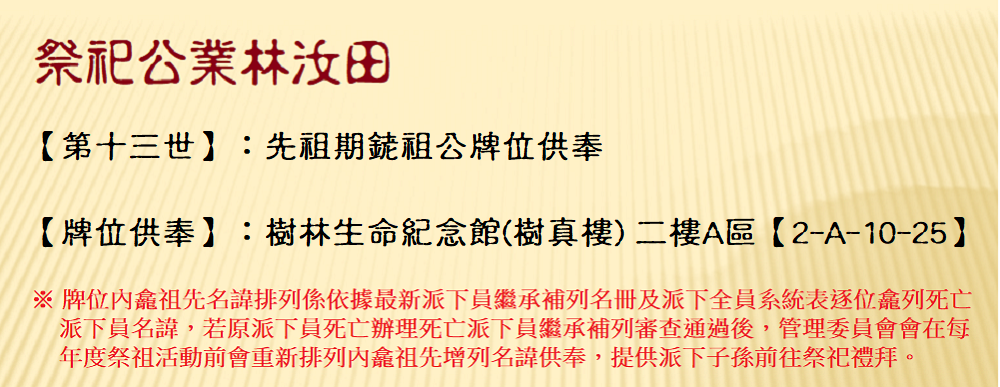 供奉林氏歷代祖先牌位福地(樹林生命紀念舘)
