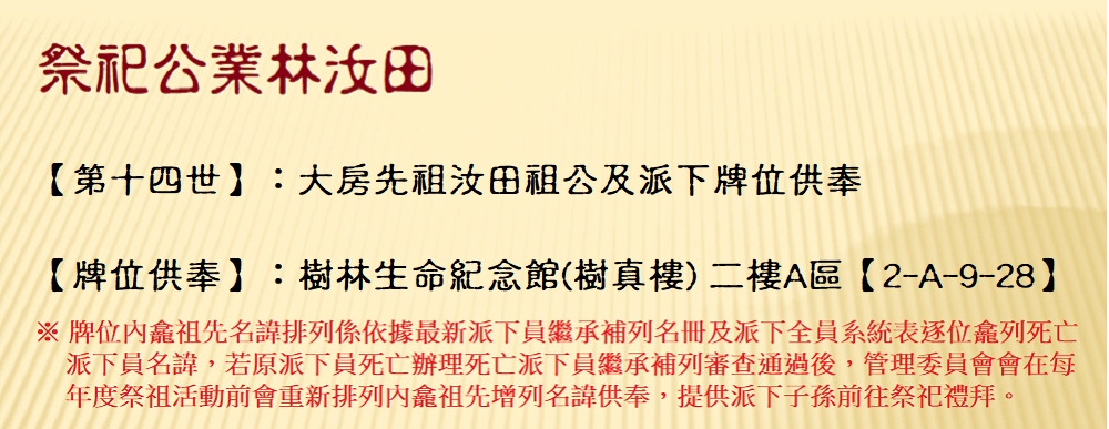 供奉林氏歷代祖先牌位福地(樹林生命紀念舘)