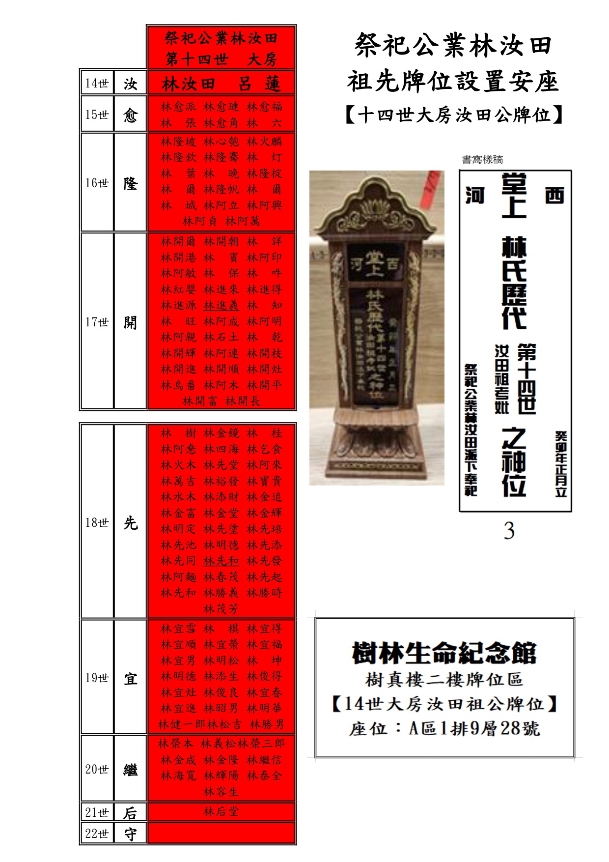 【12世.13世.14世.祖先牌位】含派下子孫